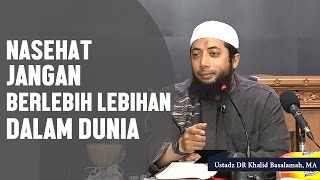 - Nasehat jangan berlebih lebihan dalam dunia. Ustadz DR Khalid Basalamah, MA